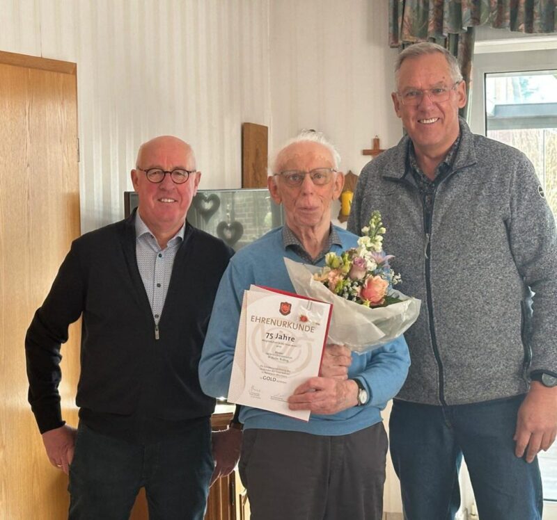 Wilhelm Wissing wurde im stolzen Alter von 92 Jahren für seine 75-jährige Mitgliedschaft in der Feuerwehr Vreden geehrt. Er ist damit der Feuerwehrmann mit der längsten Zugehörigkeit im Löschzug Vreden.