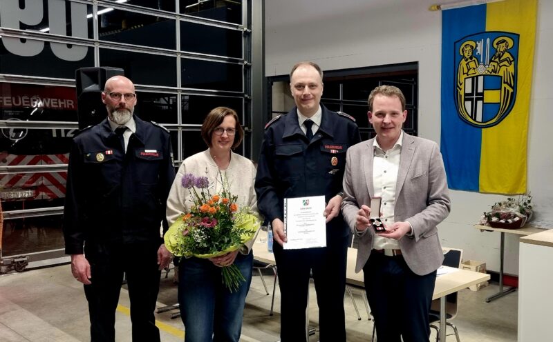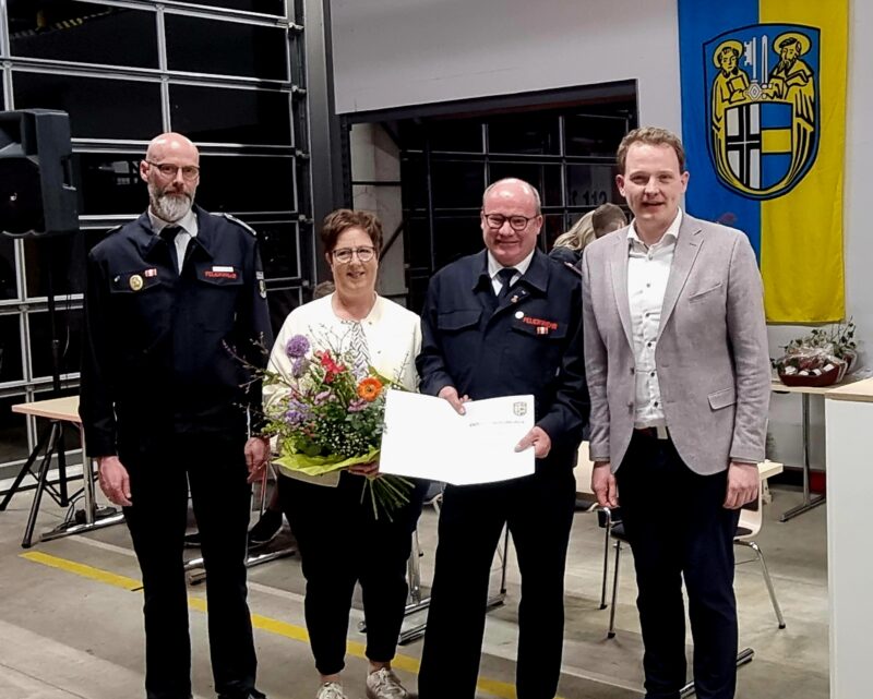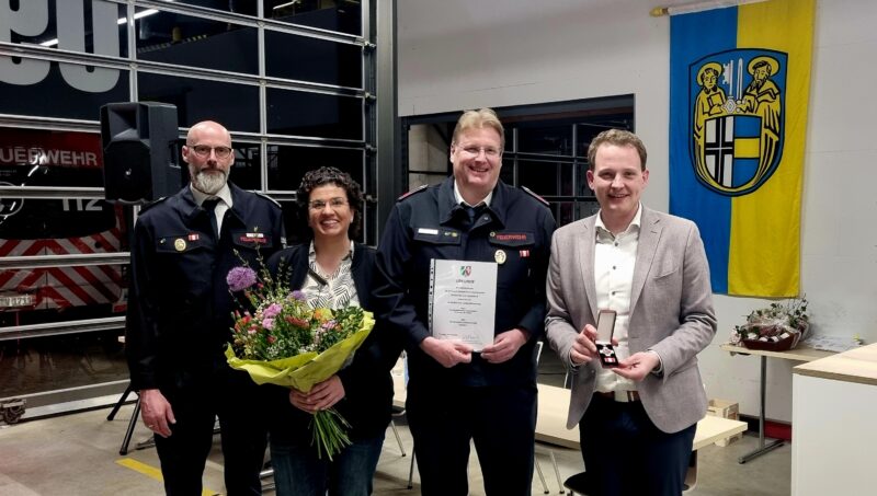 Auch Kreisbrandmeister Stefan van Bömmel dankte den Kameradinnen und Kameraden für die geleisteten Einsatz- und Übungsstunden. Die gute Zusammenarbeit zwischen Verwaltung, Politik und Feuerwehr lobte er ebenfalls. Auch das Engagement über die eigene Stadtgrenze hinaus blieb nicht unerwähnt.