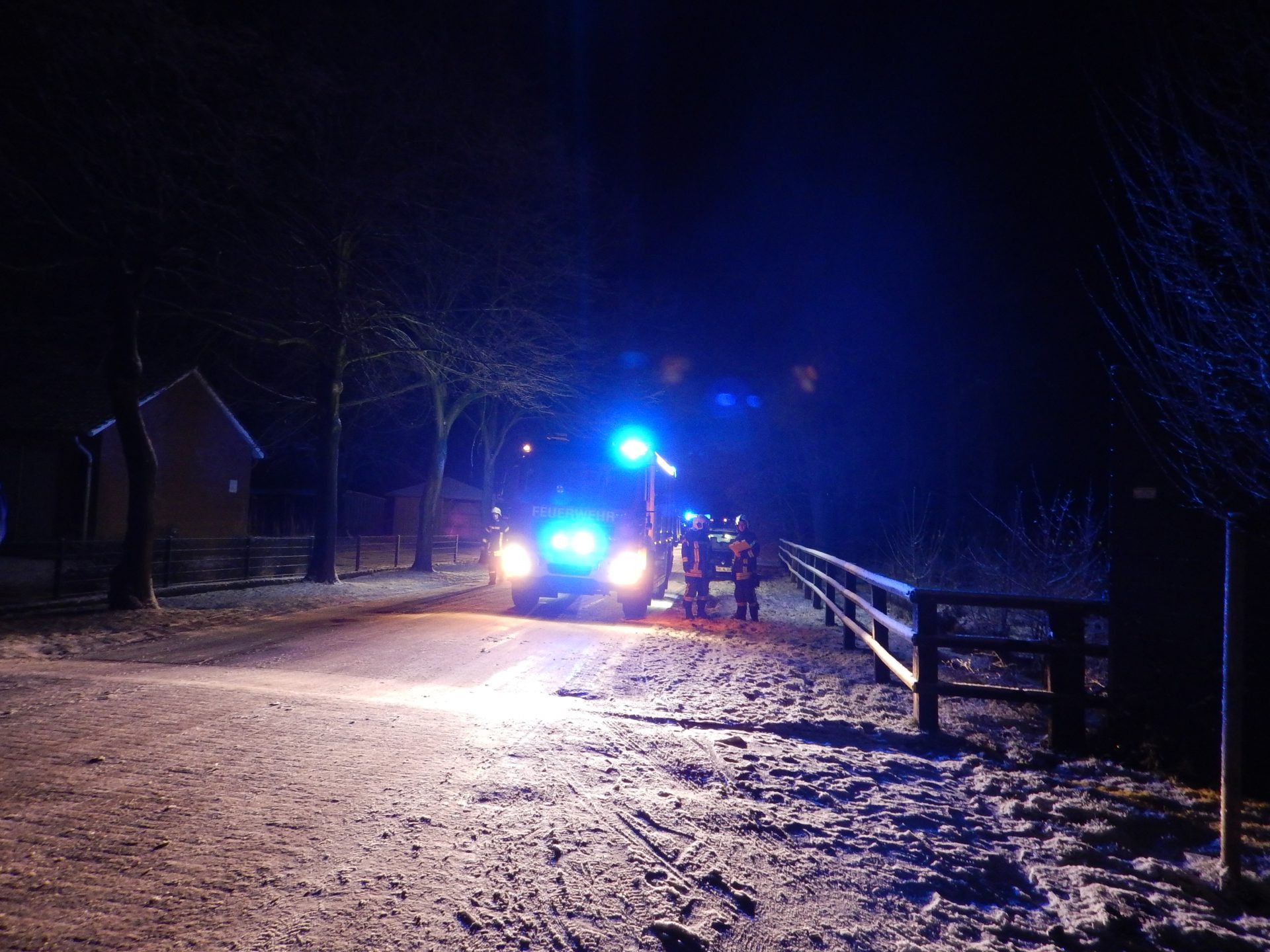 In der Nacht vom 15.01.2017 um 04:13 Uhr wurde der Löschzug Vreden-Stadt mit dem Stichwort „Gasaustritt“ zur Schützenhalle nach Großemast alarmiert. Vor Ort haben bislang unbekannte Täter einen Imbisswagen auf die Seite gekippt, woraufhin Gas aus dem Wagen strömte. Als die ersten Einsatzkräfte vor Ort waren, wurde der direkte Bereich um den Imbisswagen zuerst gesperrt. Anschließend ging ein Trupp unter schwerem Atemschutz mit einem Gasmessgerät vor. Das Gerät schlug in der Nähe des Wagens sofort Alarm. Im Wagen konnte der Trupp eine beschädigte Gasflasche ausfindig machen, welche sporadisch Gas abließ. Diese wurde letztlich entfernt und sicher gestellt. Anschließend wurde der Wagen durch mehrere Einsatzkräfte wieder aufgerichtet und daraufhin gelüftet. Die Polizei des Kreises Borken hat die Ermittlungen aufgenommen. Der Imbisswagen wurde an den Eigentümer übergeben.